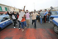 La strage dentro e fuori una sartoria a Varcaturo. I killer, forse quattro, avrebbero fatto irrruzione con le pettorine della polizia e poi preso a sparare a due mani con pistole e Kalashnikov. Esplosi almeno 120 colpi. Una allucinante mattanza dalle modalità inedite in questa terra dove si uccide molto ma in genere in maniera meno fragorosa. Restano colpite sette persone, sei morti e un ferito ancora ricoverato in difficili condizioni. Sono tutti immigrati, ghanesi, togolesi, liberiani. La lettura immediata di inquirenti e mass media segue le strade più scontate: una ritorsione legata al traffico della droga e al mondo dello spaccio. Ma c’è anche chi ricorda poco tempo fà l’assassinio del gestore di un lido che si er a rifiutato di pagare il pizzo. E l’ipotesi investigativa che un gruppo di fuoco dei clan del casertano abbia scelto una strategia violenta e clamorosa per giocare la propria partita nelle gerarchie e negli indirizzi dell’organizzazione. ‘Propaganda armata’ a fronte delle titubanze e del disorientamento dei capi storici pressati dai processi. Una strategia che spingerebbe ad azioni esagerate e sanguinarie. Secondo la testimonianza del fotografo Ansa che è stato sul luogo della strage: ‘Qualunque fossero le motivazioni dell’agguato è difficile credere che si sia trattato di assassini mirati per tutti. L’impressione, per le modalità folli della sparatoria, è che se i killer avessero trovato in zona venti persone ne avrebbero ammazzate venti…’. Non tutte le vittime sono dentro la sartoria. Alcune sono in strada, un ragazzo è colpito in macchina, la cintura di sicurezza ancora allacciata; Il Riot Una ricostruzione a partire dai resoconti di antirazzisti del centro sociale ex-canapificio di Caserta, che da anni supportano immigrati e rifugiati che vivono in quest’area e che sono accorsi oggi a Castelvolturno Il corteo di protesta parte nella tarda mattinata. Presto si trasforma in rivolta perchè la rabbia trabocca. Quando arrivano gli attivisti dell’Ex Canapificio lungo la Domiziana si sono formati ormai diversi blocchi, con barricate e fuochi, macchine ribaltate e segnaletica stradale divelta. In strada ci sono anche figli, mogli e parenti di alcune delle vittime, tantissimi amici e connazionali. Molte centinaia di persone. Le motivazioni di quest’esplosione stanno sicuramente nell’emozione e nel dolore della strage, ma anche in un insieme complesso di altre componenti. Provo a ricostruirle dal raccont o di Mimma dell’ex-canapificio: ‘Anzitutto sostengono l’estraneità delle vittime rispetto alla camorra. In realtà ci sono molti che ne conoscevano specificamente una o un’altra e rivendicano la dignità della sua memoria. Ci sono ad esempio tante persone con una fotografia di Kwame Antony Julius Francis, che di mestiere faceva il muratore e da pochi giorni era tornato da Milano. Kwame era in Italia da sei anni come richiedente asilo, fino al riconoscimento di uno status di protezione umanitaria. Altri ricordano il proprietario della sartoria, El Adji Ababa, di cui anche i vicini di casa italiani difendono la reputazione. Vicinissima alla sartoria c’è un agenzia della Western Union: diverse persone frequentano quel posto per inviare denaro ai parenti. E’ il caso probabilmente di Akey, una delle vittime che lavorava a Napoli come barbiere. In strada è presente la moglie, che ieri lo ha aspettato invano per or e prima di sapere della tragedia’. Ma ancora più forte è l’indignazione per un sentimento di discriminazione molto diffuso, che si mescola alla paura e all’incertezza del futuro: tanti temono che passata l’onda della notizia la polizia si dimenticherà della strage. E che l’impunità dei colpevoli fissi il prezzo della vita di un immigrato in questa zona. Non sarebbe la prima volta. Molti qui ricordano la morte di Job Augustine, nigerino, gambizzato nella vicina Giugliano per ‘futili motivi’ e deceduto poi in ospedale. Una morte senza colpevoli, come altre morti o sparizioni che a volte non vengono neppure alla luce. ‘Appena siamo arrivati – continua Mimma – in tanti gridavano che se fosse morto Berlusconi domani ci sarebbe il colpevole. Invece per sei neri non succederà niente’. Un episodio simile, seppur minore, c’è stato a Napoli un anno fà. Dopo il ferimento alle gambe di due ragazzi immigrati, gambizzati probabilmente per una festa troppo rumorosa (..!!). I loro connazionali si riversarono in piazza bloccando le strade con i cassonetti. Il motivo della protesta stava nell’impressione di inerzia avuta dalla volante della polizia che loro stessi avevano allertato (audio intervista a un immigrato presente). Protagoniste erano le stesse comunità dell’africa occidentale, soprattutto ghanesi e nigeriani. Un sentimento di frustrazione e di discriminazione che si sta quindi radicando, con l’impressione di essere compressi nel difficile status di persone senza diritti di cittadinanza e insieme oggetto dei peggiori stereotipi. Quando invece la stragrande maggioranza conosce il pane duro del lavoro sfruttato e non garantito nei tanti cantieri in nero dell’edilizia, nelle autorimesse, nelle piccole offici ne. Una frustrazione ancor maggiore perchè il sentimento di insicurezza e di abbandono si combina con la percezione che lo stato italiano sia vessatorio solo quando si occupa del loro diritto di soggiorno. In una parola sola ‘razzista’, come il grido che risuona più spesso nella giornata. ‘In molti – aggiunge ancora Mimma – denunciano violenze o minacce dai padroni di casa che cercano di cacciare con la forza gli immigrati, perchè temono il sequestro dell’immobile dopo le nuove norme del ‘pacchetto sicurezza’. E dicono che spesso i Commissariati di zona si rifiuterebbero di raccogliere le loro denunce, soprattutto se l’immigrato è senza documenti’. Storie diffuse: proprio in queste settimane è venuta fuori quella di Angel, una donna sola con la sua bambina, che è s