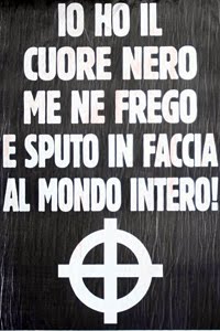 Un ultimo dato: il panorama assai frastagliato del neofascismo milanese si è ulteriormente complicato dopo l’implosione di Cuore nero, causata anche dai forti contrasti interni. Dal fallimento di questo progetto sono nate da un lato Casa Pound Milano, guidata da Francesco Cappuccio, ora assai vicino alla Lega nord e al Centro identitario padano di via Bassano del Grappa (collabora anche alla rivista mensile di Mario Borghezio Il borghese del nord), dall’altro Calci e pugni (il nome è indicativo), nuova sigla dei fratelli Todisco, tempo fa solo una linea di produzione di magliette e gadget d’area. La prima uscita di questo nuovo raggruppamento è prevista per il prossimo 5 giugno, al pub Alabama di via Carlo Farini. Nella serata, come recita la locandina, saranno presentati i nuovi capi da «streetwear». Tra birra e buffet la serata sarà animata da una cubista. Quando si dice «i fascisti del terzo millennio»…
