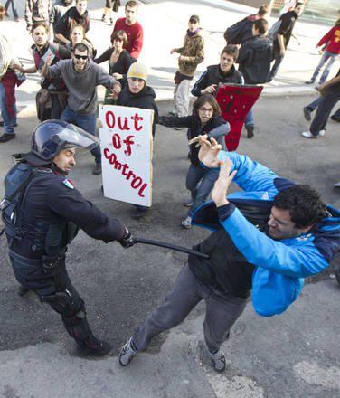 E allora perché? Come motivare quella manganellata? Forse non ha né senso né giustificazione, come del resto i rastrellamenti, il fitto lancio di lacrimogeni e le decine di fermati in giro per l’Italia. Era la giornata di mobilitazione europea contro le politiche di austerity imposte dalla troika e qui da noi dal governo Monti, dove i risultati sono alquanto discutibili visto che in un anno di “tecnici” il debito pubblico è salito più che in tre anni di Berlusconi e il disagio sociale cresciuto in maniera esponenziale.