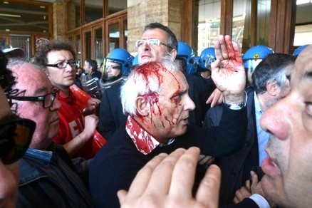 Violente cariche della polizia alla stazione di Terni contro gli operai dell’ Ast . Ferito anche il sindaco di Terni, Leopoldo Di Girolamo. Durante le cariche, oltre al sindaco, sono rimaste ferite anche altre persone, che si trovavano alla testa del corteo. I testimoni raccontano di una reazione troppo energica dei poliziotti che non si sono limitati a sbarrare la strada agli operai, ma hanno iniziato a manganellare nel tentativo di allontanare i manifestanti