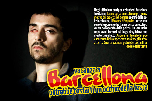 Tre italiani hanno perso un occhio a causa dei proiettili di gomma sparati dai Mossos D’Esquadra a Barcellona, le istituzioni italiane non si sono mai davvero interessate alla vicenda. Chiediamo al Ministero degli Esteri di impegnarsi attivamente, mediante tutti i canali ufficiali diplomatici affinché sia fatta luce sull’accaduto e vengano puniti i responsabili. Chiediamo inoltre che vengano messi al bando i proiettili di gomma, usati dalle polizie spagnole, proiettili che, a Bilbao, hanno di recente causato la morte di Iñigo Cabacas Liceranzu, 28 anni. Sono armi improprie, da bandire.